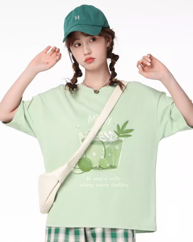 Tシャツ プリントTシャツ 半袖 カットソー レギュラー丈 Uネック ルーズ スリム 細身 ストレート スマート 裾イン 薄手 かわいい 大人可愛い シンプル カジュアル 大人 おしゃれ レトロ