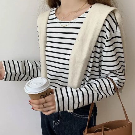 トップス Tシャツ カットソー ロンT ボーダーシャツ 袖あり 長袖 萌袖 ラウンドネック 襟なし かわいい 大人可愛い カジュアル 大人 おしゃれ かっこいい レトロ 大人女子 こなれ感 ラフ